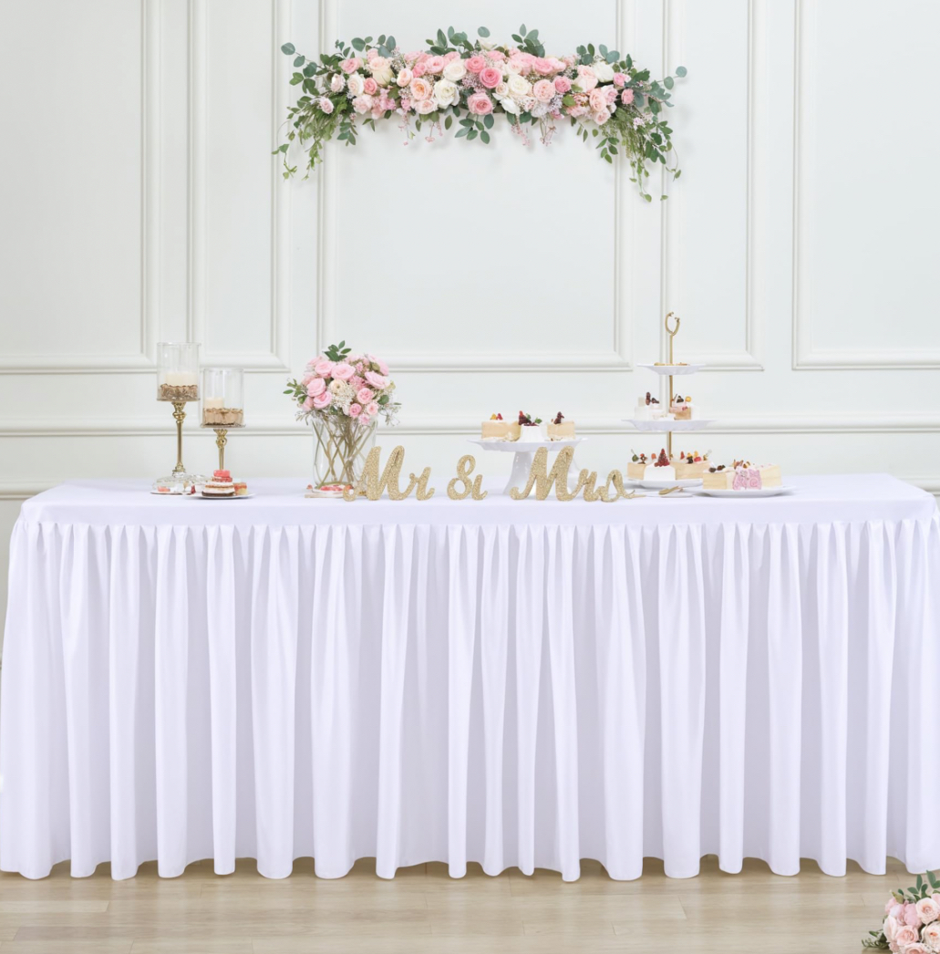Potahy na židle i stoly. Možno přidat na židle široké stuhy barvy dle Vašeho výběru.